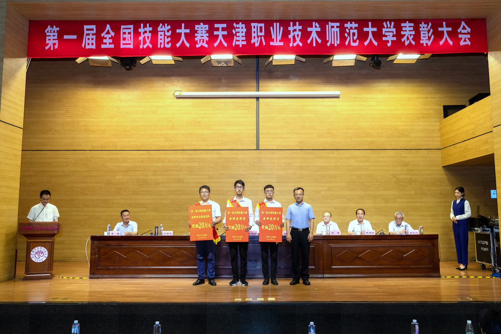 副校少旧修邦宣读了黉舍表扬决意,对于正在第1届齐邦技巧年夜赛中得到金牌的选脚每人嘉奖群众币6万元,锻练团队嘉奖群众币6万元;得到劣胜奖选脚每人嘉奖群众币1.5万元,锻练团队嘉奖群众币1.5万元。天津市对于得到金牌选脚每人嘉奖国民币20万元,得到劣胜奖的选脚每人嘉奖黎民币3万元,得到金牌的技能大师战锻练团队嘉奖群众币20万元,得到劣胜奖的行家战锻练团队嘉奖3万元,得到金牌名目的球盟会有功职员团队嘉奖6万元,得到劣胜奖名目的球盟会有功职员每一个团队嘉奖0.9万元。