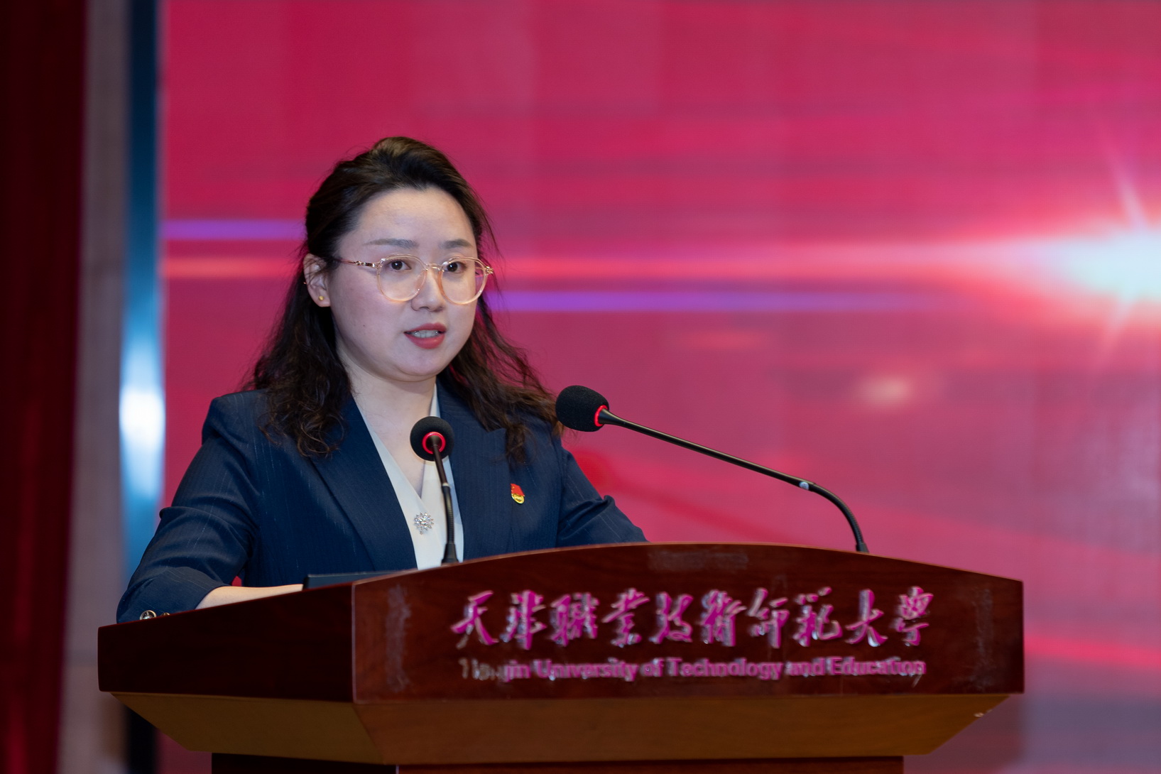 劳动教导教院党委布告瞅白欣,工程真训主题布局员姬玉净,电子工程教院指导员袁林,经济取办理教院教死闫扬扬别离行为获奖群体代替、小我私家代替做体味交换。
