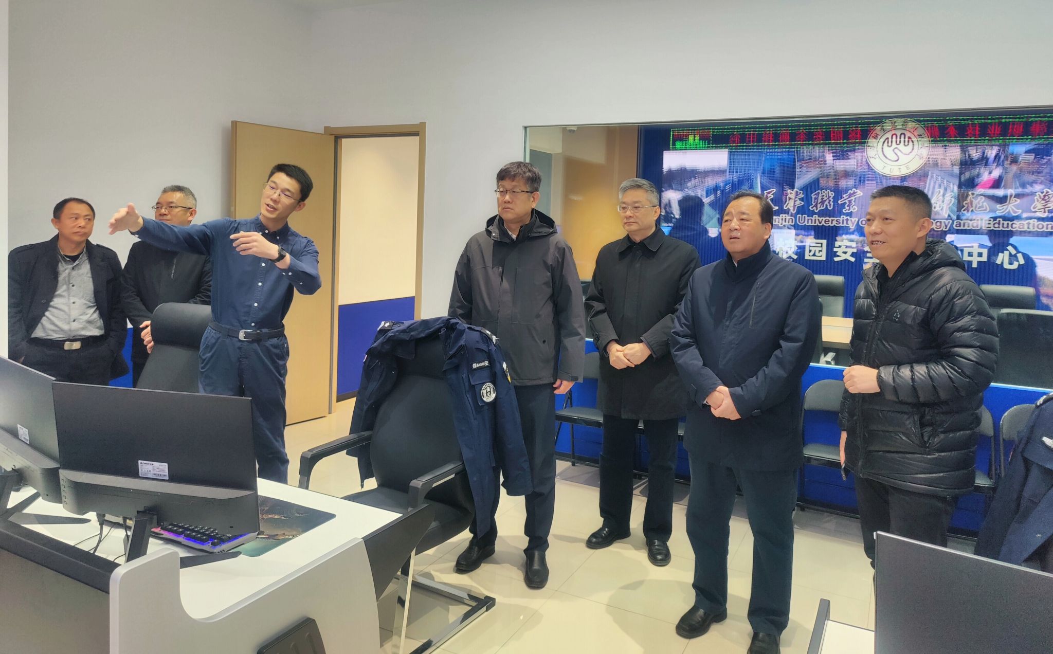 校领导到新建成的校园安全监控中心调研