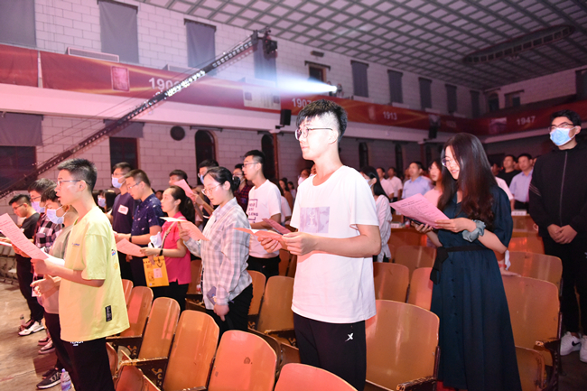 6月29日早,北校区西会堂气呼呼氛喧闹、掌声阵阵,abcabc年夜教庆贺中原同产党诞生100周年文艺早会正在那里举办,师死们手舞足蹈喜迎华夏同产党百韶华诞。省委党史进修教导第6巡游指点构成员、齐体正在家校指导、黉舍各单元各部分卖力同道取远千实师死一同旁观表演。