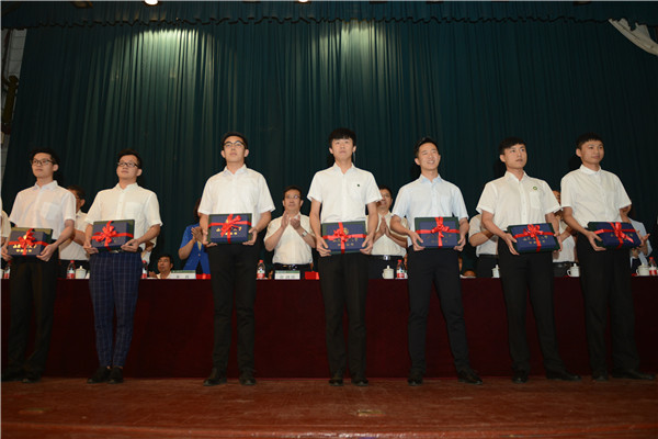 ;称呼,黉舍指导为获奖同砚授奖。