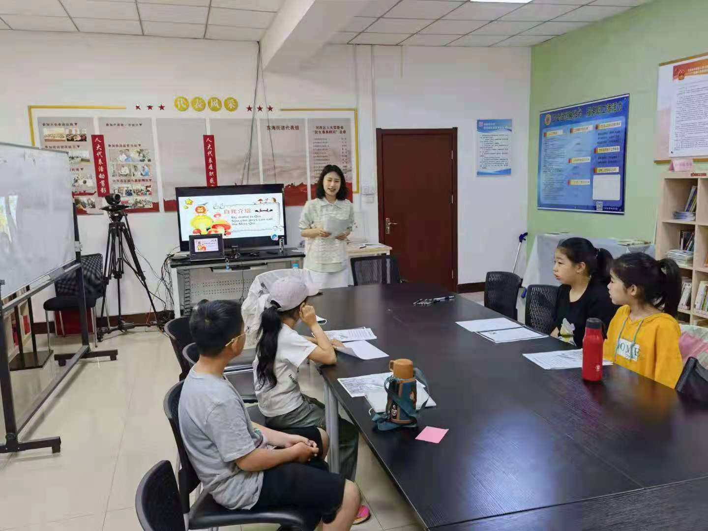 英语教死党收部走入新惠园社区-教室传授中归瞅上节课党史进修核心