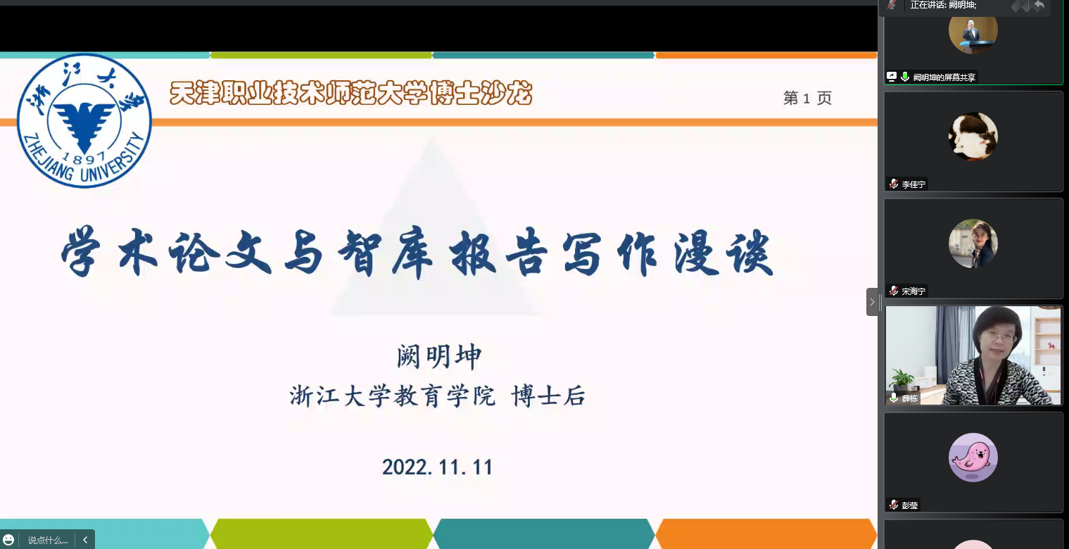 阙亮坤传授对于教术论文战智库讲述的撰写停止了深度论说。正在教术论文写稿圆里,阙亮坤传授阐释了专士死撰写教术论文的“3年夜疑心”“4步走”及“5个本领”,夸大了选题、储材战构想的紧张性;正在智库讲述写稿个别,阙亮坤传授对于智库讲述的观点、性子、组织、感化等停止细致引见,表明停止智库钻研要以教术研讨